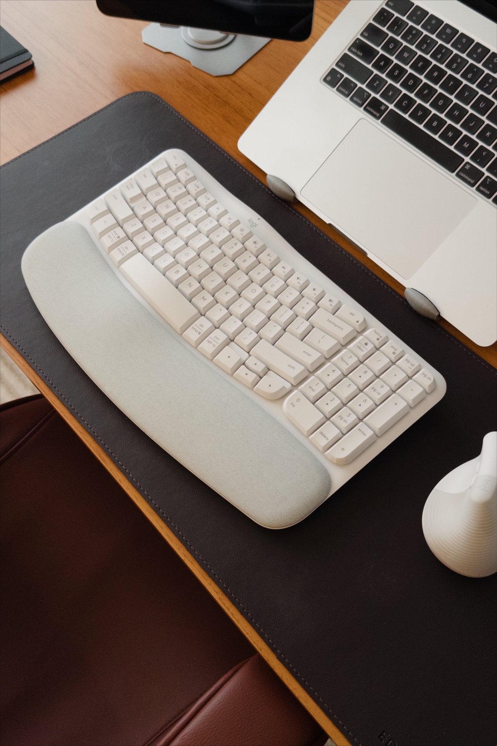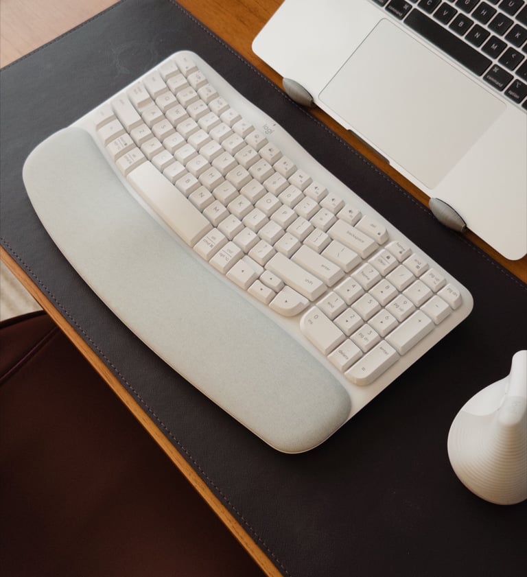 Esse teclado faz parte do meu setup e ajuda bastante na digitação ao longo do dia. Ele tem um formato confortável, o que reduz o esforço durante o uso contínuo. Para quem trabalha com computador, pequenos ajustes como esse fazem muita diferença na produtividade e no conforto.