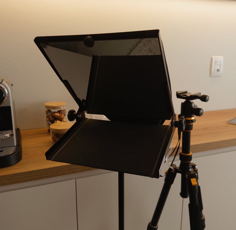 Uso esse teleprompter para ler roteiros enquanto gravo vídeos, me ajuda muito a ganhar tempo e também a evitar erros durante a gravação. Ele permite que eu mantenha o olhar direto na câmera, o que deixa o conteúdo mais natural.