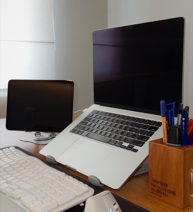 Aqui estão os produtos que eu realmente uso no meu dia a dia para criar conteúdo, trabalhar e organizar minha rotina.